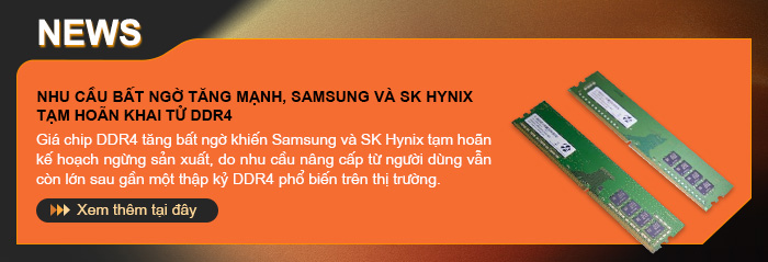 Thị trường linh kiện tháng này chứng kiến một thông tin đáng chú ý: Samsung và SK Hynix đã tạm hoãn kế hoạch ngừng sản xuất DDR4. Động thái này giúp thị trường bộ nhớ ổn định hơn, đồng thời mở ra thêm cơ hội nâng cấp với chi phí hợp lý cho người dùng phổ thông, đặc biệt trong bối cảnh DDR5 chưa phổ cập rộng rãi.