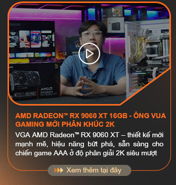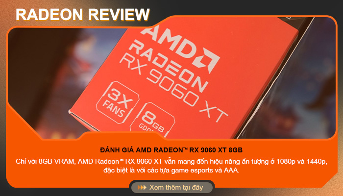 Về sản phẩm, Ryzen™ 5 3400G vẫn là lựa chọn phổ thông được ưa chuộng, nhờ hiệu năng ổn định, tích hợp đồ họa Vega, phục vụ tốt nhu cầu học tập – làm việc và giải trí nhẹ nhàng. Trong khi đó, các dòng Radeon™ RX 9070 16GB và RX 9060 XT tiếp tục khẳng định sức mạnh ở phân khúc tầm trung – cao cấp.