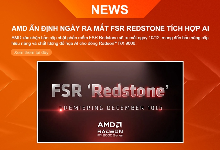Tháng 11 đánh dấu bước tiến mạnh mẽ của AMD trong công nghệ đồ họa và AI, tiếp tục củng cố vị thế trong cuộc chiến chip AI. Về sản phẩm, AMD ấn định ngày ra mắt bản nâng cấp FSR Redstone tích hợp AI cho Radeon™ RX 9000. AMD cũng cam kết hỗ trợ dài hạn toàn bộ dòng Radeon™, đảm bảo hiệu suất và trải nghiệm ổn định cho mọi game thủ.