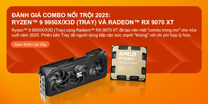 Ở phân khúc người dùng cuối, các lựa chọn nổi bật gồm Ryzen™ 5 8500G - giải pháp PC giá rẻ cho học sinh, sinh viên và văn phòng; Ryzen™ 5 9600X - CPU mới hiệu năng cao, tiết kiệm điện; Ryzen™ 7 9800X3D - CPU gaming cao cấp với 3D V‑Cache; và các combo nổi bật Ryzen™ 7 5700X3D, Ryzen™ 9 9950X/X3D cùng Radeon™ RX 9070 / RX 9060 XT, đáp ứng nhu cầu từ tầm trung đến cao cấp.