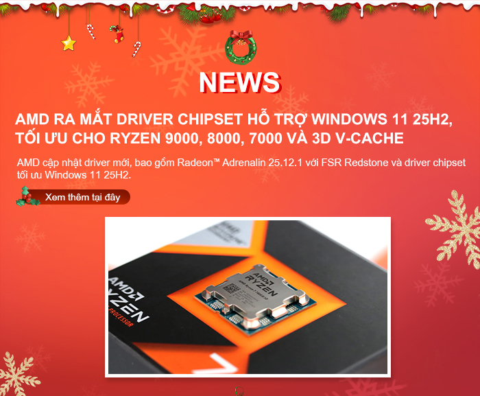 Cuối năm nhưng AMD vẫn không ngừng tối ưu hệ sinh thái của mình, từ phần mềm đến phần cứng. Về nền tảng, AMD đã phát hành driver chipset mới hỗ trợ Windows 11 25H2, đồng thời cập nhật Radeon Adrenalin 25.12.1 với FSR Redstone, mang lại khả năng tối ưu tốt hơn cho các dòng Ryzen™ 9000, 8000, 7000 và Ryzen™ X3D.